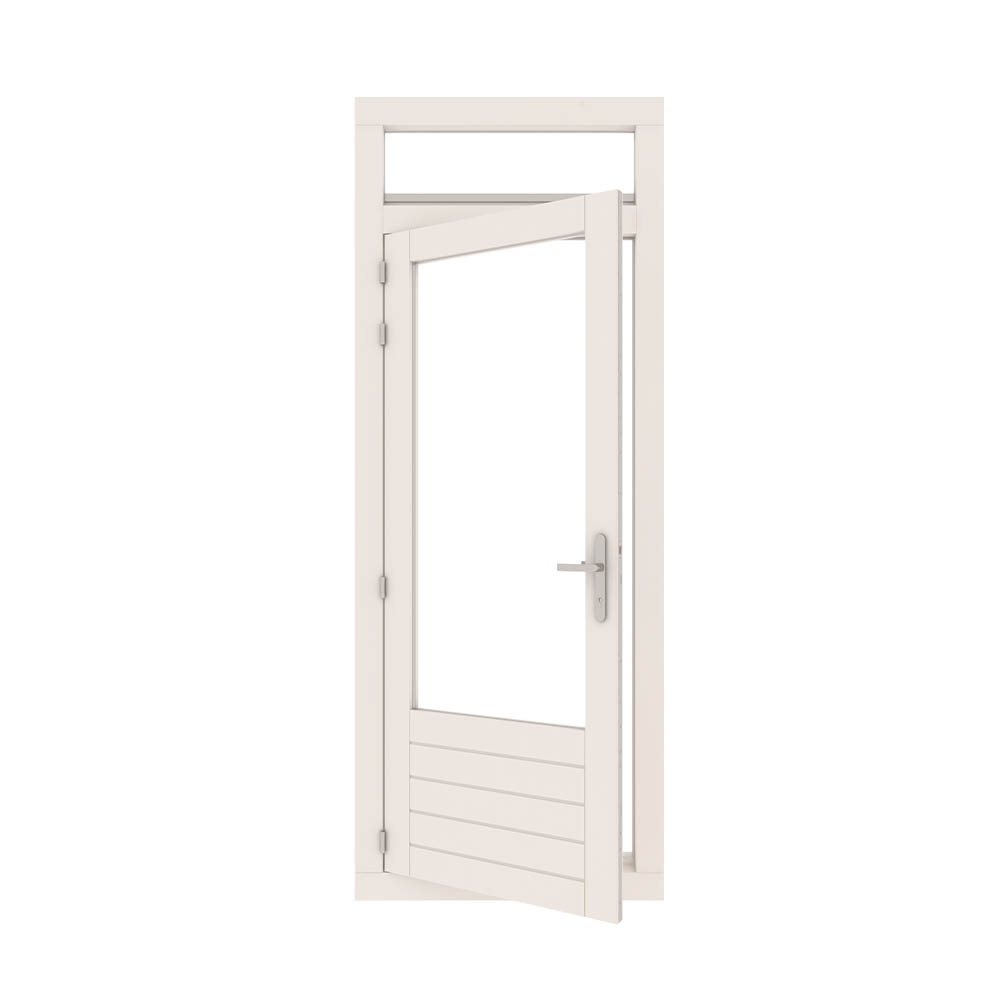Dit type deurkozijn heeft een bovenraam/bovenlicht en wordt geleverd inclusief deur. Je bepaalt zelf de uitstaling van je deur. Het kozijn past daardoor in ieder interieur door de strakke afwering. Dit kozijn wordt vaak gebruikt in de achterzijde van de gevel. De deur is rondom voorzien van een tochtstrip. Zo wordt geluid en tocht tegengegaan.