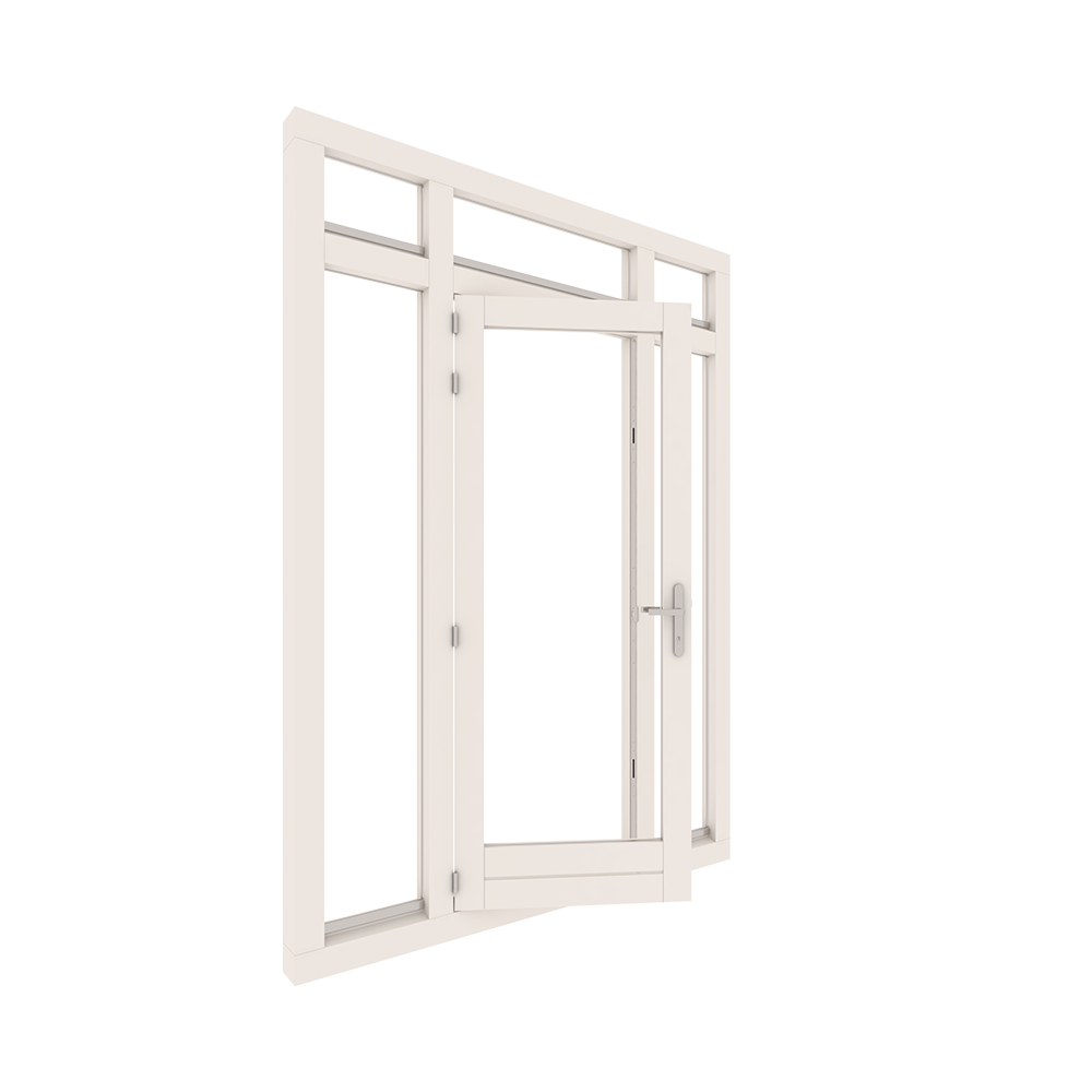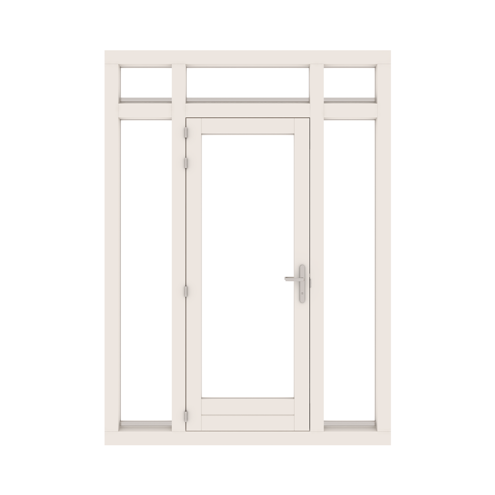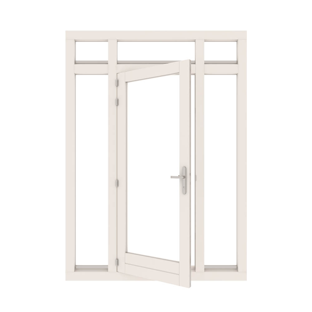 Wil je echt iets unieks? Dan kies je voor de tuindeur met aan alle kanten extra ramen. Dit kozijn zorgt voor een uniek aanzicht van je gevel en ontzettend veel licht in de kamer. Het kozijn heeft 2 zijlichten. En het kozijn heeft een bovenlicht dat verdeeld is in 3 delen. Alle deurkozijnen worden geleverd inclusief deur. De deur is rondom voorzien van een tochtstrip. Zo wordt geluid en tocht tegengegaan.